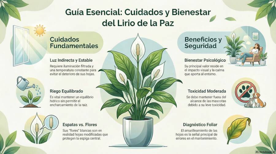 Infografía sobre los cuidados del lirio de la paz